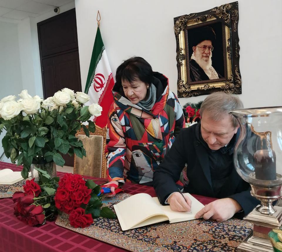 Заместитель председателя «Движения Союз» Дмитрий Семченко оставил запись в книге скорби, открытой в дипломатическом представительстве. Через Чрезвычайного и Полномочного Посла Исламской Республики Иран в Республике Беларусь он передал искренние соболезнования всему иранскому народу, разделяя боль невосполнимой утраты.